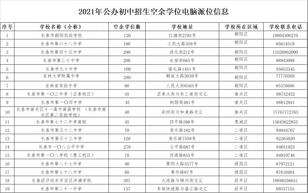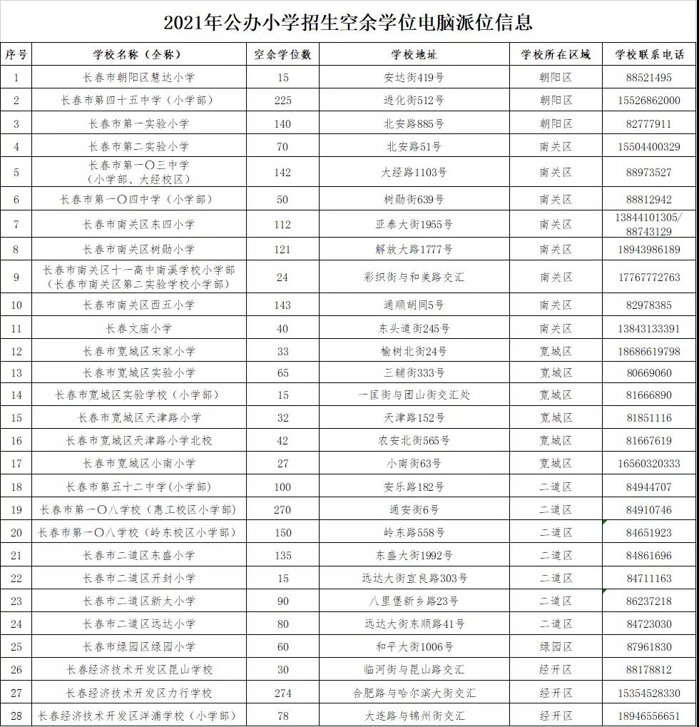 1.公办学校面向本行政区域进行派位,民办学校面向长春市进行派位。
