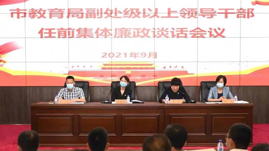 为增强新任职干部的廉洁自律意识和履职担当精神,根据党风廉政建设有关规定,市教育局于9月1日对2020年12月以来新提拔和调整任用的副处级以上领导干部进行了集体廉政谈话。市教育局党组成员、副局长董妍主持会议,市纪委监委驻市教育局纪检监察组组长侯俊杰同志讲话。