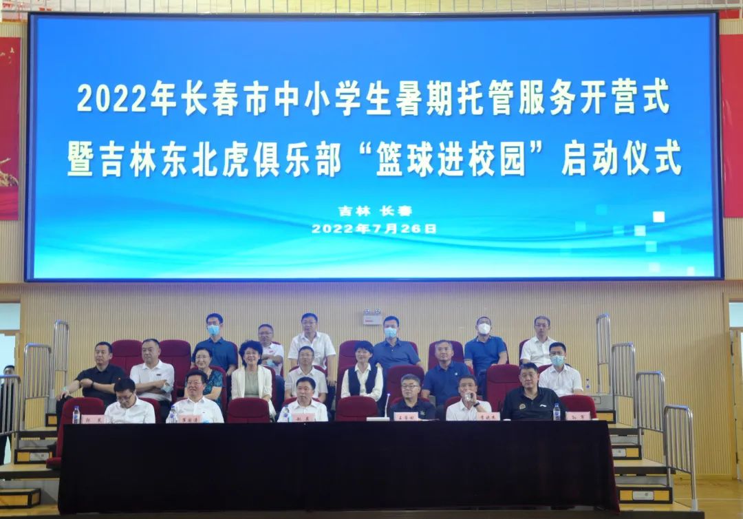 7月26日,2022年长春市中小学生暑期托管服务开营式暨“篮球进校园”启动仪式在长春市第二实验中学顺利举行。副市长赵显出席了本次活动并宣布开幕,市政府副秘书长王希田主持活动。市教育局局长崔国涛、市体育局局长李晓杰致辞。