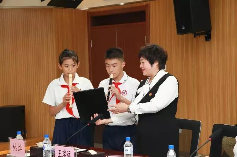 六年五班的丛灿、王瑞远同学作为学生代表,向调研组介绍了他们在第七小学师德高尚、业务精湛的教师们引领下,学会了国学经典诵读、美术泥塑制作、音乐竖笛演奏、科学实验操作、体育篮球竞技等技能特长,他们喜欢学校开设的每一门课程。同学们因为喜欢学校、喜欢老师而更爱学习。他们主动要求为调研组的领导们吹奏竖笛,当悠悠的《天空之城》从他们指尖流淌出来的时候,调研组领导给予了热烈的掌声。调研组认为第七小学培养的阳光少年是德、智、体、美、劳全面发展的好少年。