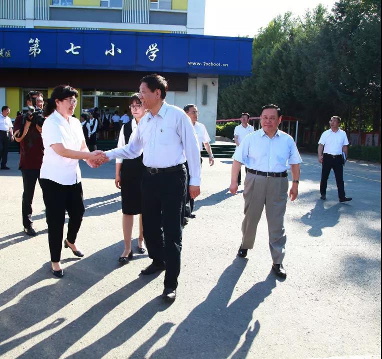 近期,全国政协调研组尹蔚民一行7人来到长春汽车经济技术开发区第七小学,围绕“深化教师管理体制改革,提高教师队伍质量”开展专题调研。来调研的领导有全国政协常委尹蔚民、房建国、姜建初,全国政协委员黄宝荣。参与陪同的吉林省领导有:吉林省政协副主席赵晓君、吉林省政协社会和法制委员会副主任王敬锋、吉林省教育厅教师工作处副处长倪志昕。参与陪同的长春市领导有:长春市政协副主席郝肖峰、长春市政府副秘书长卢福建、长春市政协副秘书长黄强、长春市教育局副局长张茂金、长春市人社局副局长张咏刚、长春市政协社会和法制委员会副主任马海等。