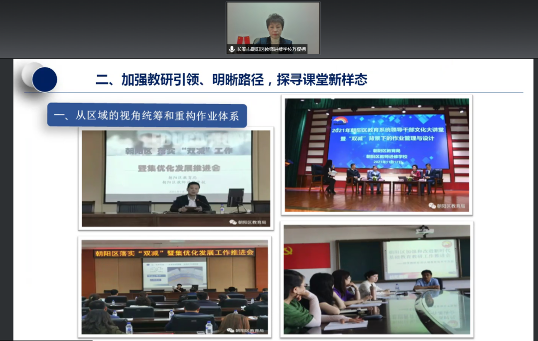 会上,朝阳区教师进修学校副校长万樱楠以《作业管理与智慧课堂双轮驱动为“双减”赋能》为题,介绍朝阳区“双减”工作经验。