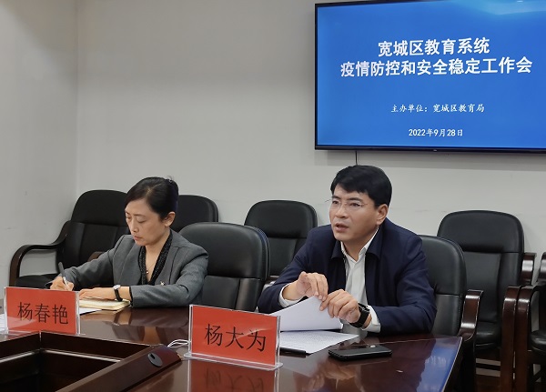 9月28日下午,宽城区教育局召开教育系统疫情防控和安全稳定工作视频会。教育系统中小学、幼儿园校长园长和主管防疫、安全的副校长副园长参会。