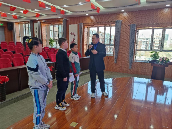 长春市二道区吉林小学邀请到长春教育学院中文系教授,国家级普通话水平测试员和主讲教师——刘焕丰教授莅临学校指导经典诵读,在学校四楼阶梯教室,刘教授听取了学生们的诵读展示,邀请每名学生,面对面进行准确、幽默地一对一点评。