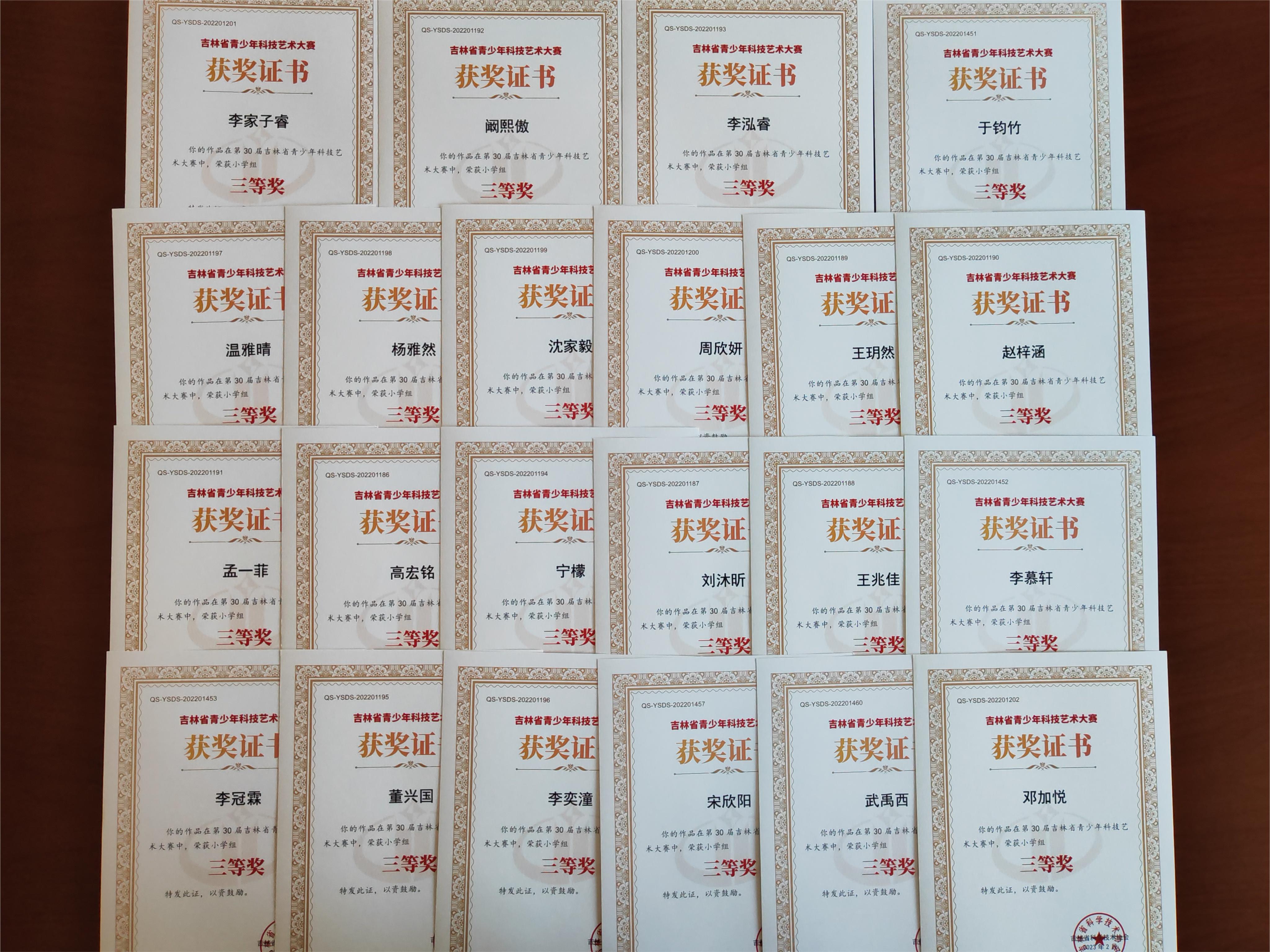 荣获吉林省青少年科技艺术大赛三等奖22人。