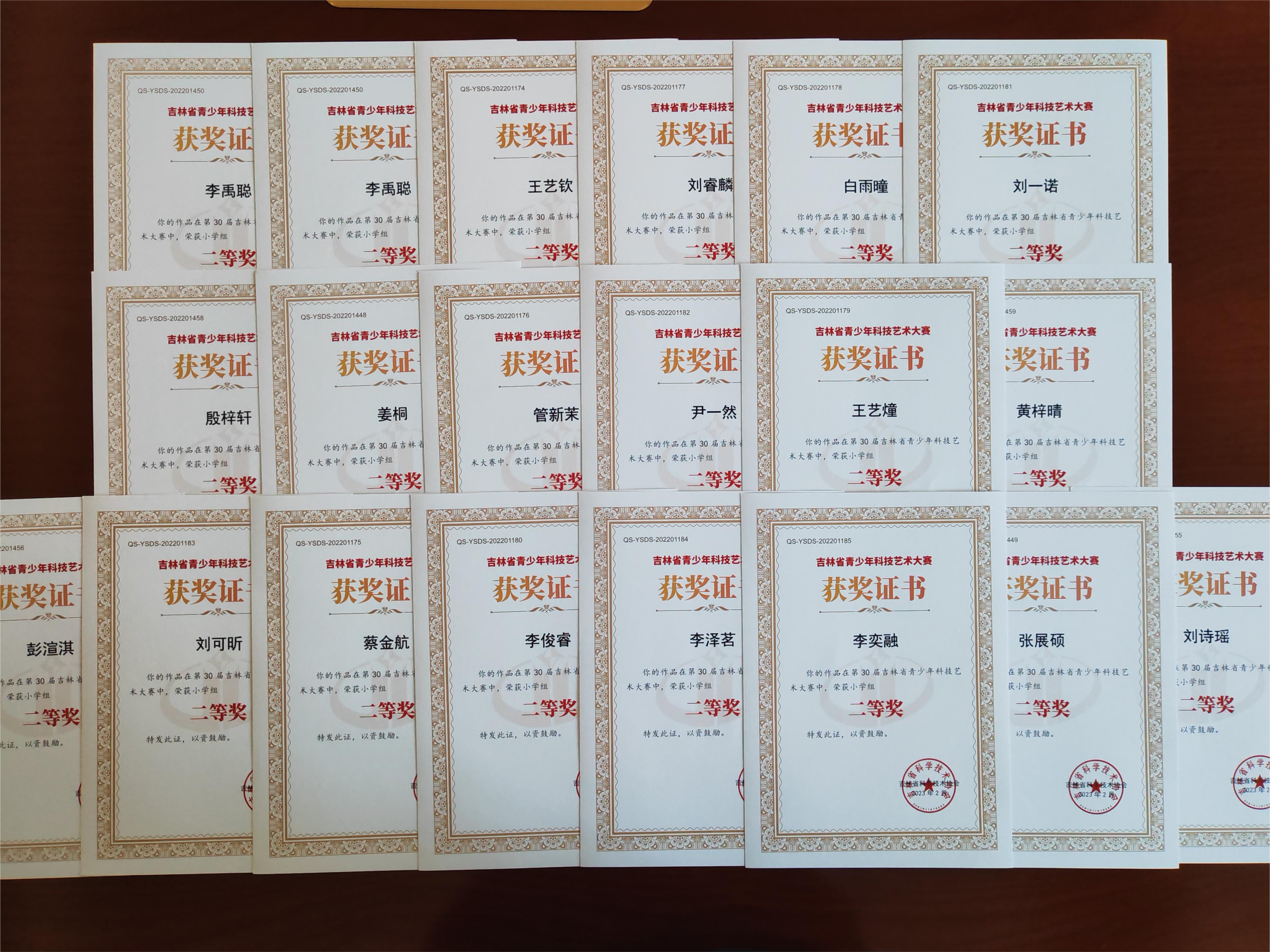 荣获吉林省青少年科技艺术大赛特等奖5人。