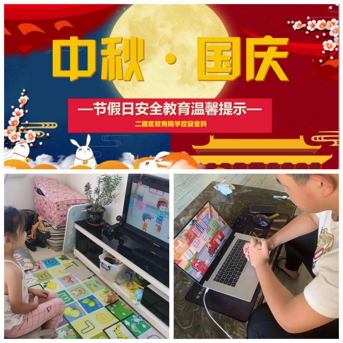 区教育局要求各学校假前采取《致家长一封信》、每日一提醒等多种形式,广泛开展以防溺水、防汛、防交通事故、防地质灾害、防火防盗、防不法侵害等为主要内容的安全教育,提高广大师生的自我防范意识和能力。二道区教育局安全科制作《中秋、国庆“两节”期间二道教育校园安全温馨提示》,面向4万余名学生及家长全覆盖转发宣传。同时,要求各学校要借助相关线上宣传教育平台,通过生命与安全教育课程、微信公众号等各类宣传方式,扎实开展“两节”期间安全教育工作。