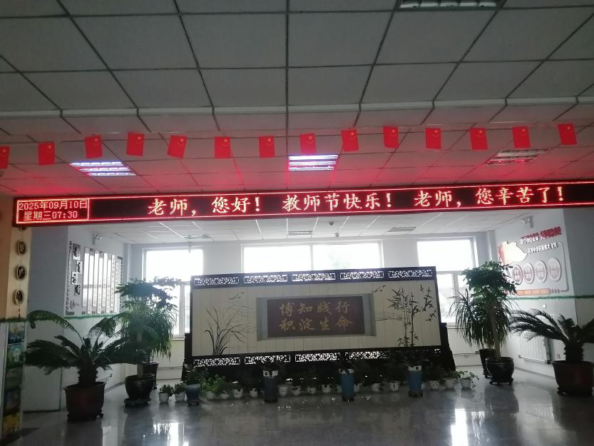 当日清晨起,全区各校、幼儿园的电子显示屏陆续亮起,澄澈的光流中,“以教育家精神铸魂强师,谱写教育强国建设华章!”“老师,您好!”“教师节快乐!”“老师,您辛苦了!” 等祝福话语循环滚动,字字真挚如潮。这束束灯光不仅是视觉的致敬,更承载着深沉的人文关怀--它照亮了教师们伏案备课的身影,也温暖了他们扎根讲台的坚守,让无悔的教育情怀在光影中愈发坚定。
