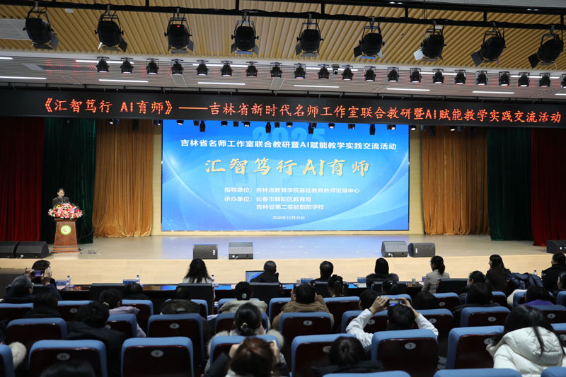 12 月 25 日,吉林省新时代名师工作室联合教研暨AI赋能教学实践交流活动在吉林省第二实验朝阳学校举行。本次活动由吉林省教育学院基础教育教师发展中心指导,以 “汇智笃行 AI育师”为核心主题,汇聚省、市、区三级 10 个名师工作室的骨干力量,共探人工智能与教育教学融合创新之路。吉林省教育学院基础教育教师发展中心副主任邹天鸿、朝阳区教师进修学校校长张钺参加活动。
