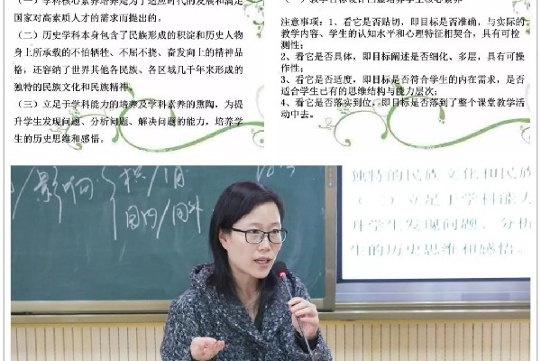 焦海涛老师从教学设计的角度谈如何落实核心素养。1、教学设计要紧扣“中心”,实现价值引领2、教学设计要凸显“主角”,关注学生发展3、教学设计要彰显“史韵”,彰显学科特色4、教学设计要留有“空间”,促进教学生成。