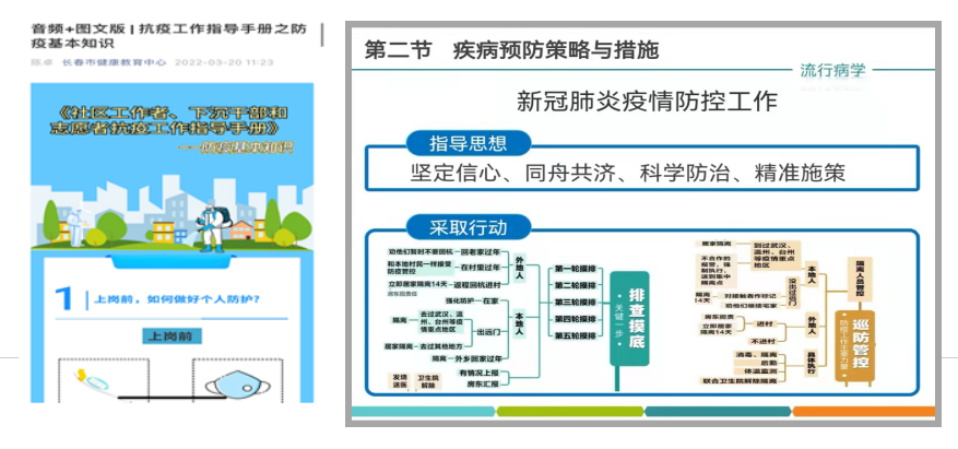 通过集体备课,预防医学教研室全体教师研讨交流了第一课堂与第二课堂协同育人成果。第一课堂注重在教学内容中融入疫情防控、公共卫生、体育锻炼、生命教育等元素,通过生动案例,分享自身经历,鼓励学生灵活运用公共卫生知识和技能,使学生们充分体会到学习专业知识的重要性。如通过播放战疫胜利视频、点赞、讨论等形式,帮助学生树立战胜疫情的信心。同时,根据线上教学特点和当前疫情形势及时调整教学内容,新增实训项目:疫情期间的的儿童青少年健康教育、新冠肺炎流行病学调查,使学生能够结合当下深刻领会预防医学教育。第二课堂依托专业力量,指导预防医学专业学生推出各类科普文章、动画、短视频,汇聚渠道立体传播,及时高效传递专业信息,引导公众科学应对新冠肺炎疫情。其中,长春健康教育中心公众号上的名为《社区工作者、下沉干部和志愿者抗疫工作指导手册》文章,在短短一天的时间里阅读量就超过了960余次;自编“防疫舞”更是被中国吉林网、腾讯新闻等媒体转发,在社会上引起了广泛的关注和认可,被称为“疫中吉林暖时刻”。两课堂合力,助推学生专业能力和综合素质的快速提升,得到了学生的广泛认可,达到了协同育人的重要作用。