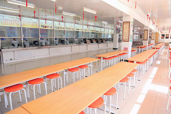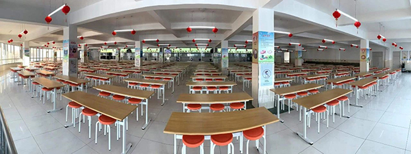 学校食堂成立于2004年,坐落于校园东侧,建有一食堂和二食堂共两个,占地面积共计7500平方米,设施完善、宽敞整洁,为全校4000多名师生同时就餐提供良好就餐环境。