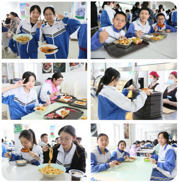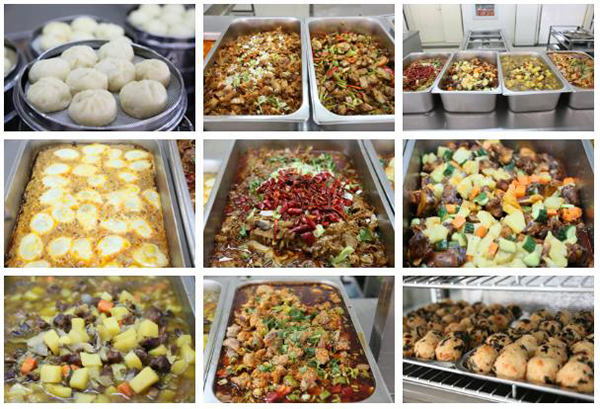 为满足学生的健康所需,食堂的早中晚提供三餐,有近百种食品可供学生选择,菜品丰富、味道可口、营养均衡。