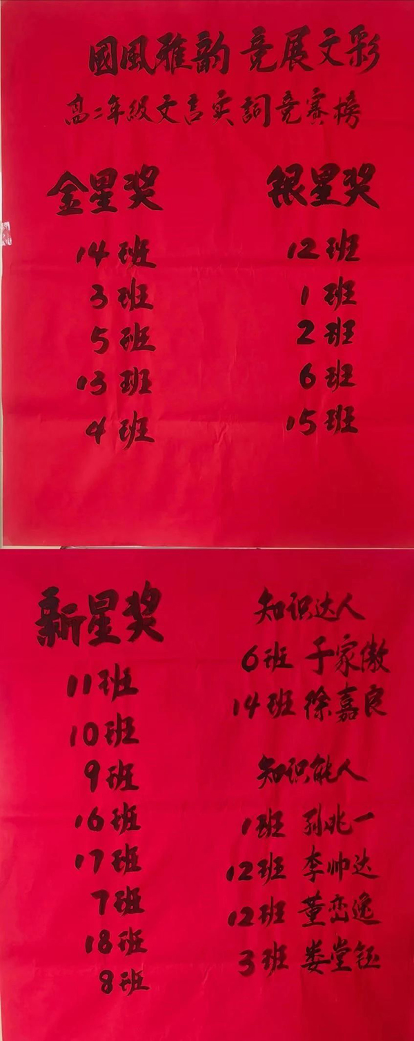 初中组举行了“大美汉字·墨润校园”汉字系列活动,“诗词大会,以诗会友”诗词系列活动和语文知识PK大赛。各种有趣的汉字游戏和比赛,增强了学生对语文学科的学习兴趣,自觉成为中华优秀传统文化的继承者和弘扬者。