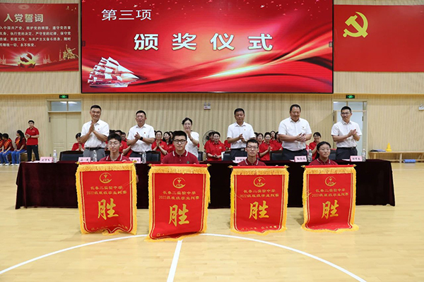 学校领导为获奖学生和优胜班级颁奖。