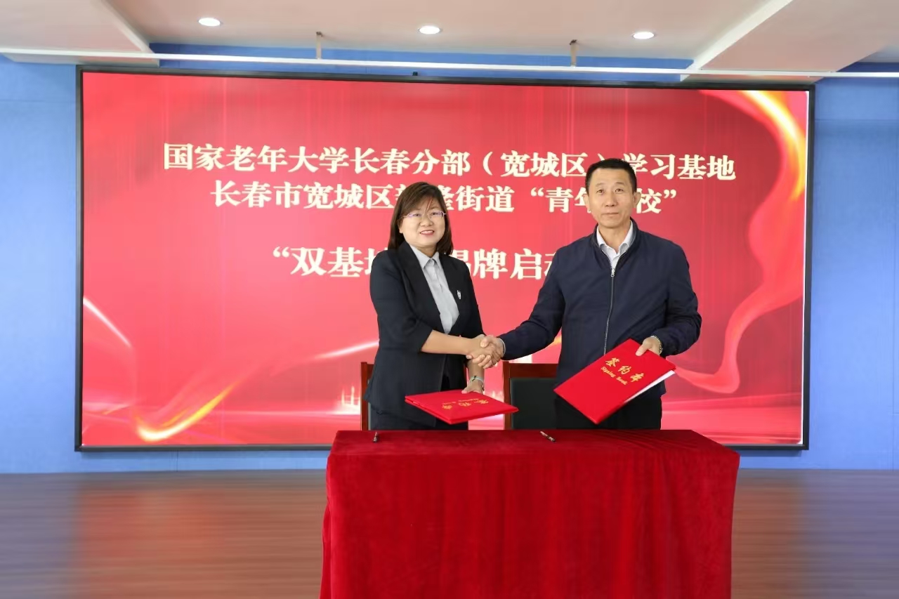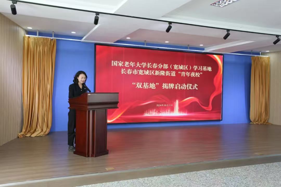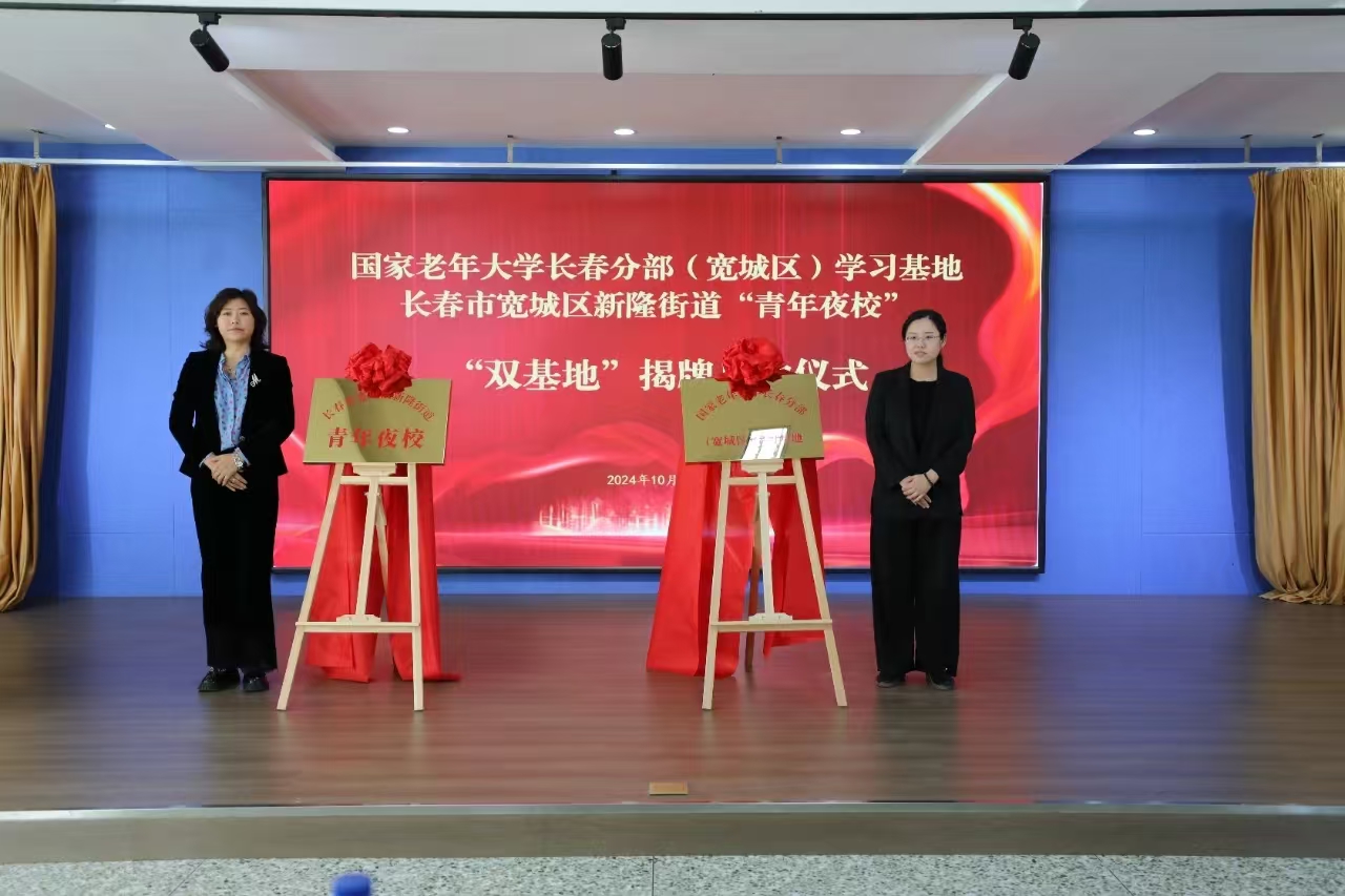 为推动形成我校老年教育“上下贯通、横向协同、多点覆盖”的网络办学新格局,在长春开放大学(国家老年大学长春分部)、共青团宽城区委、宽城区总工会多方协作下,10月11日,国家老年大学长春分部(宽城区)学习基地暨长春市宽城区新隆街道青年夜校“双基地”揭牌启动仪式在宽城区新隆街道办事处隆重举行。