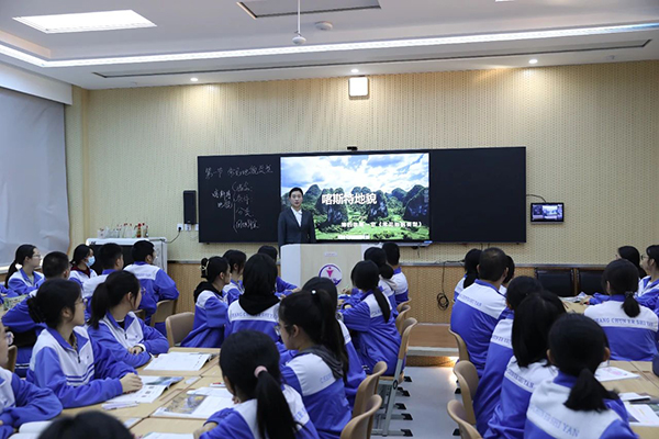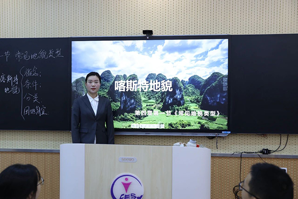 高一地理组教师曹悦承担展示课授课任务,授课内容为《常见地貌类型-喀斯特地貌》本节课紧紧围绕地理学科的核心素养展开设计,教学模式采用视频观赏、问题引领、学组合作等多种模式进行教学。通过学习喀斯特地貌,增强了学生对生活中的自然现象观赏、描述、解释的能力。本节课结合了“中国天眼”的建设条件分析,使学生充分感受我国资源的多样性,感受我国科研实力的国际地位,提升民族自豪感。