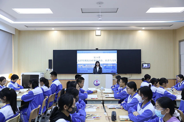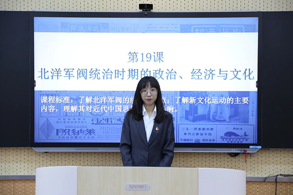 高一历史组张子微老师为学生带来《北洋军阀统治时期的政治、经济与文化》的展示课。本节课紧紧围绕历史学科核心素养展开教学设计。综合运用创设情境,学组合作等方式,以时间为线索,了解袁世凯复辟帝制、北洋军阀的统治及其特点以及革命党人抗争的史实,培养唯物史观和历史解释核心素养;并且引导学生通过了解民国初年经济、社会生活的新气象,运用唯物史观对其变化的原因作出正确的历史解释;最后概述新文化运动的主要内容并多角度认识其影响,培养学生运用史料分析问题、解决问题的能力,培养学生史料实证的核心素养,在切实落实高中历史学科核心素养要求的同时,提升学生家国情怀,树立正确时代价值观。