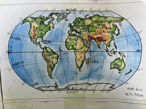 为了更好地培养学生的学科素养,初中地理组织了“心怀丘壑 目存山河”世界地形图展,孩子们踊跃参与,共有35幅优秀作品展出。同时孩子们对于下次活动也是充满了期待。