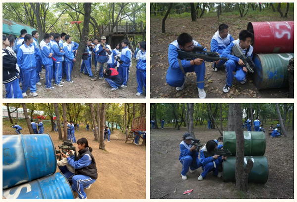 岂曰无衣,与子同袍。在七彩彩虹滑道上,老师们为同学们加油鼓劲,共享迎风而下的畅快很好的锻炼了学生勇气。同学们在CS对抗中认真学习战术、相互协作配合,提高了学生们的合作意识。这堂融合体能训练与国防教育的户外课程,不仅锻炼了同学们的心理素质,更深化了团队精神的内涵。