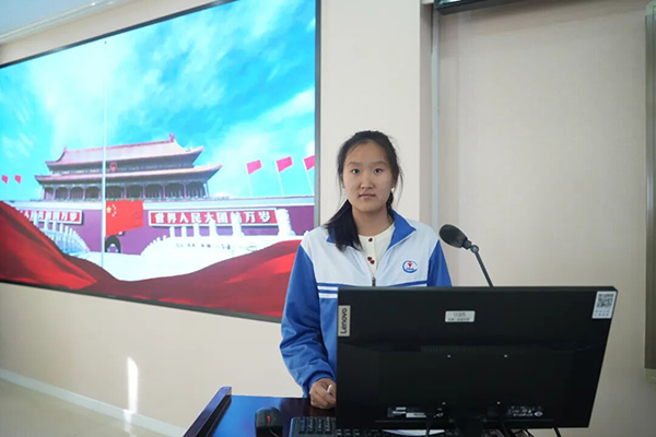 高二四班井雨涵同学做国旗下讲话。井雨涵同学首先阐述了阅读的重要意义,真正的阅读是让文字在心中沉淀,让思想在静默中生长;是不问功利的沉浸,是超越时间与空间的对话。同时他希望全体同学用阅读积淀智慧,用书香滋养品格,在“1166高质量发展行动计划”的引领下,为建设书香校园、建设全国一流水平的示范性、实验性、国际性特色学校贡献一份力量!