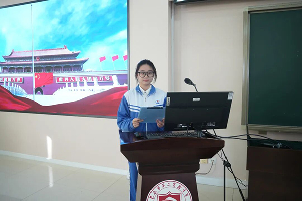 升旗手由高二、四班刘曦予同学担任。作为班级的生活班长,他笃实肯干,恪尽职守,乐于助人。曾荣获“自主管理之星”“优秀班干部”等荣誉称号。