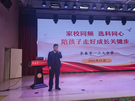 为进一步深化家校共育,搭建学校与家庭高效沟通的桥梁,凝聚育人合力,助力学生明确成长方向,长春市一三七中学于11月10日隆重召开了以“家校协同助成长,精准赋能启新程”为主题的2025-2026学年度上学期期中家长会。本次家长会由副校长李德龙主持。