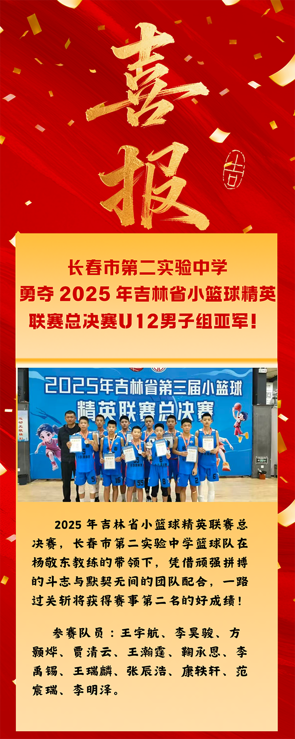 【学习型学校·喜报】长春市第二实验中学勇夺 2025 年吉林省小篮球精英联赛总决赛U12男子组亚军!