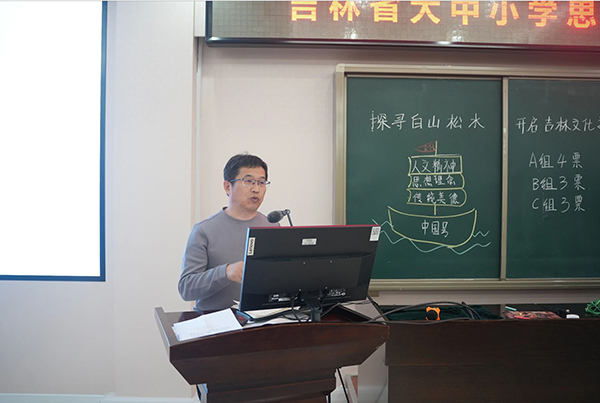 王岩老师授课题目为《探寻白山松水 开启吉林文化之旅》以吉林地域文化为载体,依托真实情境中的项目式学习,让学生在考察探究中理解文化传承的深层意义。通过费曼课堂进行研学路线展示,引导学生自主学习体验中华优秀传统文化内容,培养学生文化自信。衔接小学阶段的文化感知基础,为高中文化思辨做好铺垫,契合思政一体化“螺旋上升”理念。