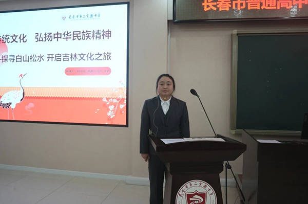 活动第二项由长春市第二实验中学初中思政教师王岩和高中思政教师苏晓庆以《传承优秀传统文化 弘扬中华民族精神》为主题进行一体化授课。