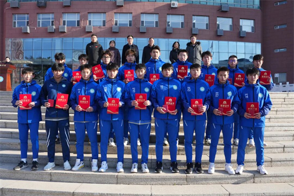 学校领导和教练员们为获奖同学颁发奖状和“卓越青年”奖章。