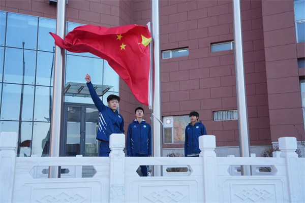 升旗手于佳驰:国家一级篮球运动员,他同篮球队全体队员团结协作,在2025 年吉林省篮球锦标赛中勇夺亚军。