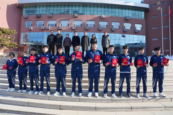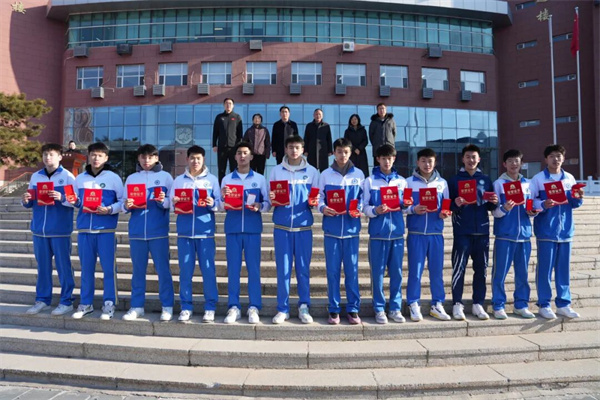 护旗手徐铭远豪:国家一级足球运动员。他与足球队全体队员同心协力、奋勇拼搏,斩获 2025 年青少年精英联赛与吉林省中学生联赛双亚军。