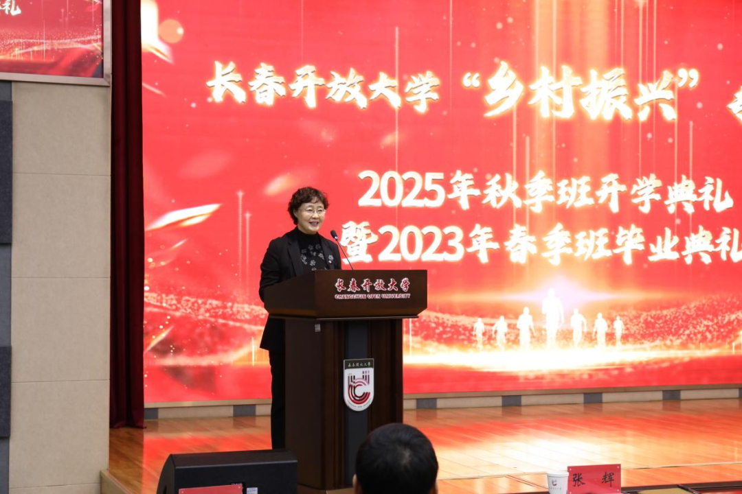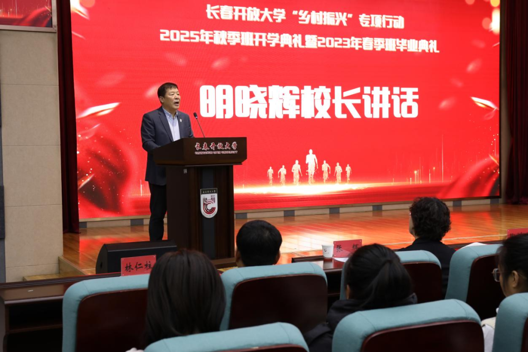 2025年11月28日上午,长春开放大学“乡村振兴”专项行动2025年秋季班开学典礼暨2023年春季班毕业典礼在学校A座三楼弘毅厅隆重举行。长春市委组织部组织三处处长汪晓亮莅临现场,长春开放大学领导班子成员出席典礼,副校长张辉主持,我校全系统师生通过长春全民学习网线上线下同步观礼。