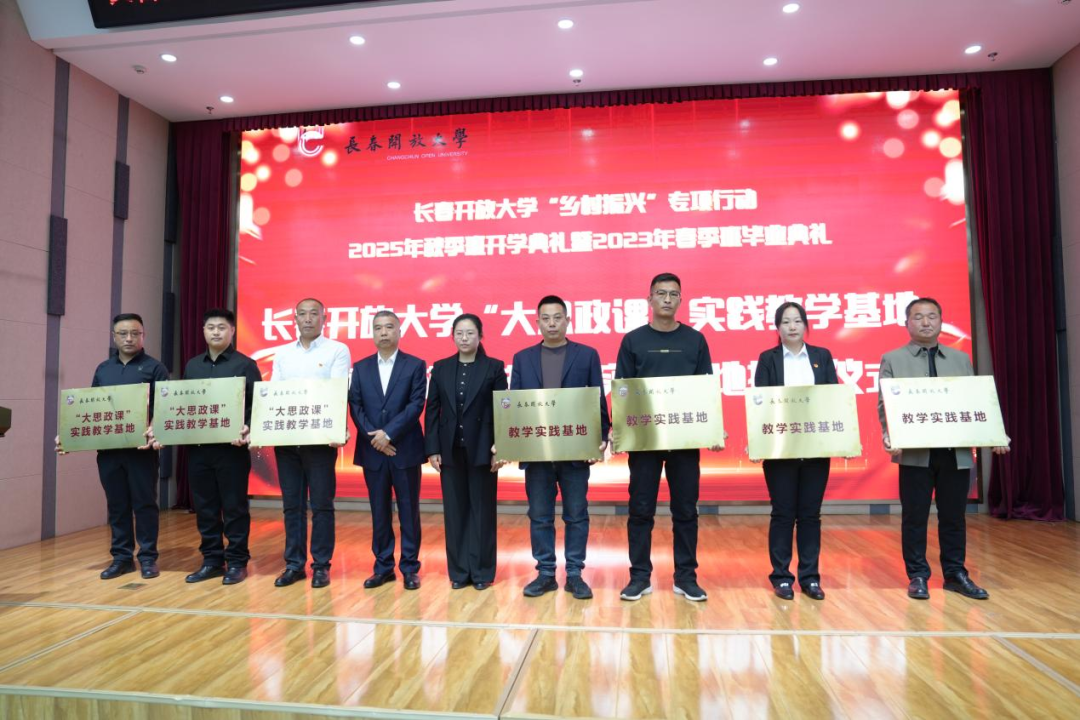 为推动思政教育与乡村实践深度融合、同频共振,学校举行了“大思政课”实践教学基地与教学实践基地授牌仪式。纪检书记、监察专员陶树海,副校长高月为合作单位代表授牌。此举将人才培养与地方发展紧密衔接,既为乡村振兴注入坚实思想动力,也让开放教育扎根实践土壤、彰显育人实效,为吉林乡村全面振兴筑牢人才支撑与思想根基。