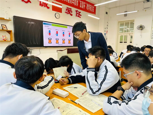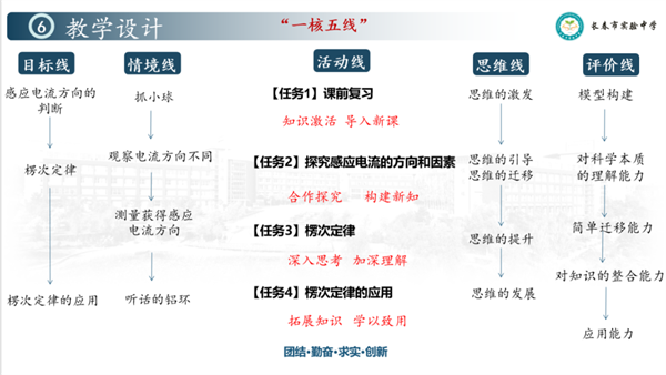 物理学科班兆隆老师以“楞次定律”为主题,以铜管中小球下落速度差异创设情境,引导学生动手实验、采集数据、分析规律。课堂通过层层追问,引导学生挖掘定律背后的物理本质,并以铝环实验实现探究闭环,生动诠释了“情境—问题—思维—活动—评价”五线融合的设计思路,培养学生的科学探究精神与社会责任感。
