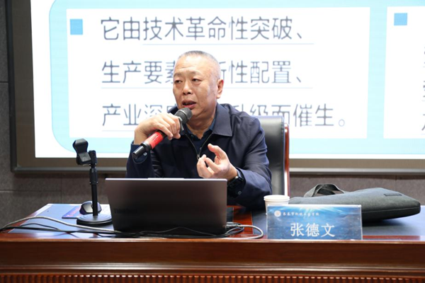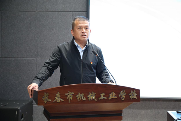 张德文主任围绕《新质生产力背景下中职教育生存与发展的探索与实践》主题,从三个方面展开深入阐述。在"思考与理解"部分,系统解读了新质生产力的时代内涵,结合习近平总书记关于职业教育的重要论述、中央经济工作会议精神、教育强国建设规划纲要及相关政策法规,立足长春现代产业体系发展实际,强调中职教育必须主动适应新质生产力发展需求。在"挑战与机遇"部分,重点分析了三重挑战和三大机遇,为学校发展提供了现实参照。在"策略与建议"部分,提出明确发展路径、精准办学定位、推进内涵提升、深化产教融合、强化数字赋能与治理能力提升等系统性建议。