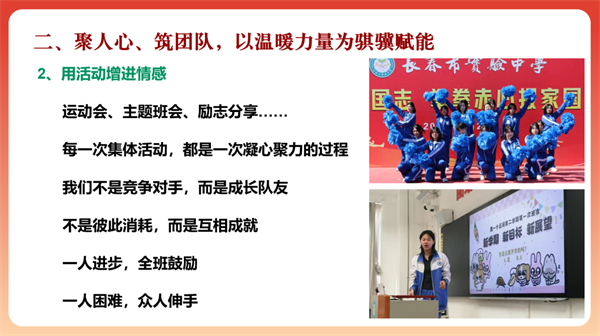 未来,长春市实验中学德育工作将继续以“求真务实”为底色,以“凝心聚力”为纽带,共同探索“精彩德育”的实施路径,为实验学子的成长赋能,讲好育人故事,为学校工作的高质量发展注入动力。