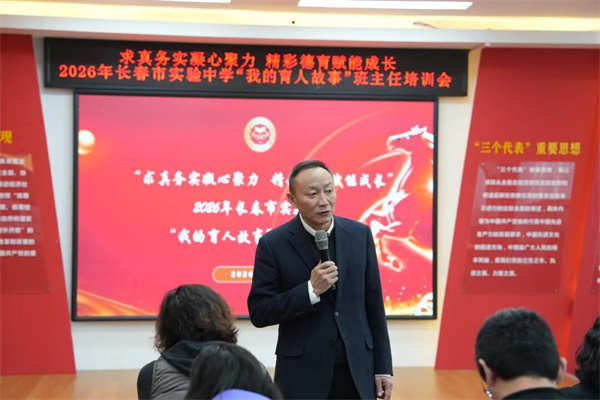 春华秋实满庭芳,栉风沐雨砥砺行。在2026年的崭新春日里,为进一步强化学校德育工作实效,提升班主任队伍的专业素养与育人智慧,长春市实验中学于2月26日上午9:00召开“我的育人故事”全校班主任培训会。长春市实验中学党委书记韩作伟、校长兼党委副书记薛红利、专职副书记邱俏、副校长张凤秋出席会议,全体班主任老师参加会议。本次会议由德育处主任张于主持。