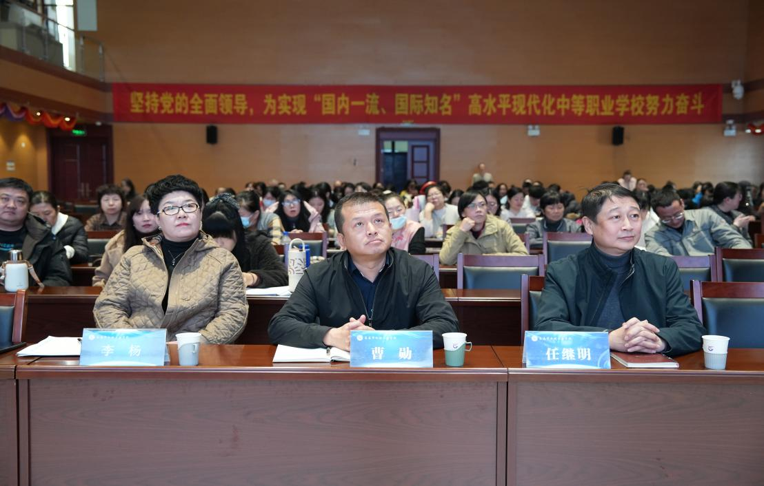 策马扬鞭,笃行致远。为主动顺应数智化教育发展趋势,全面提升教师信息化教学能力与人工智能应用水平,2026年2月25日,长春市机械工业学校在五楼报告厅隆重举行“AI 在教师教学工作中的应用”专题培训活动。学校曹勋书记、任继明校长、李杨副校长与全体教师共同参与本次培训,本次培训活动由教育教学研究督导室主任刘欣欣主持。