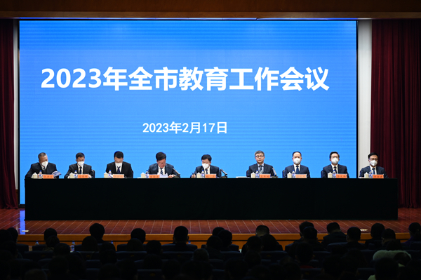 三要突出重点、抓住关键,加快推进教育事业高质量发展。全市教育系统要以习近平新时代中国特色社会主义思想为指导,深入学习贯彻党的二十大精神和全国教育工作会议精神,紧紧围绕解决“培养什么人、怎样培养人、为谁培养人”这个教育根本问题,落实立德树人这个根本任务,以推进教育高质量发展为主题,增供给、促公平,抓改革、优治理,强内涵、提质量,加快构建高品质的终身教育体系和人才培养体系,大力推进教育治理现代化。要立足立德树人,大力发展素质教育;立足改善民生,全力推动学前教育普惠发展;立足夯实根基,努力推进义务教育优质均衡和城乡一体化发展;立足服务大局,推进职业教育发展;立足强化师资,着力做好队伍建设;立足机制创新,着力做好各项改革任务。